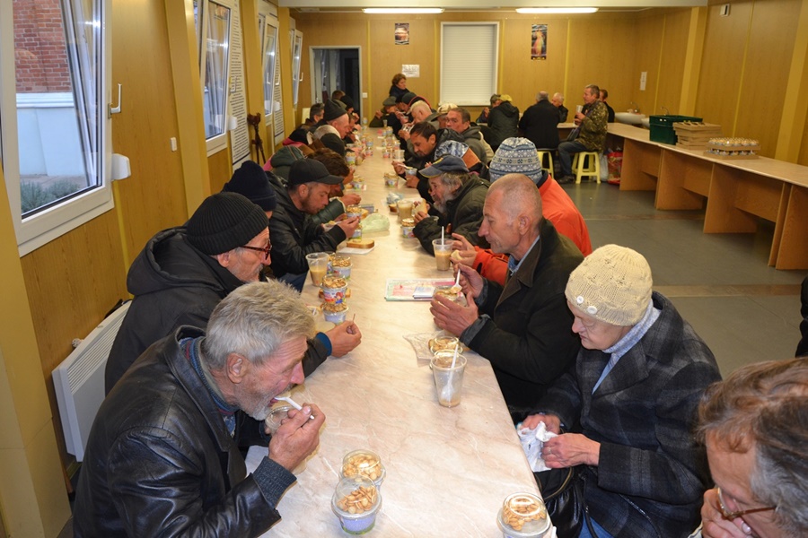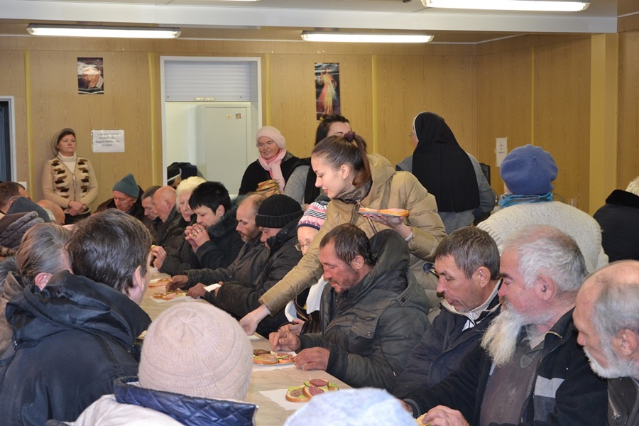 Der Bischof hat zu Beginn des Krieges in Kharkiv ein Sozialzentrum gebaut, um diesen Flüchtlingen auf verschiedenste Weise zu helfen. Sie erhalten im Sozialzentrum medizinische Hilfe, täglich frische Lebensmittel und Bekleidung. Es werden zusätzlich juristische und psychologische Beratungen angeboten. Jeden Tag werden rund 100 Personen mit einer warmen Mahlzeit versorgt. Allein 2018 haben über 10’000 Personen die Dienste des Sozialzentrums in Kharkiv in Anspruch genommen.