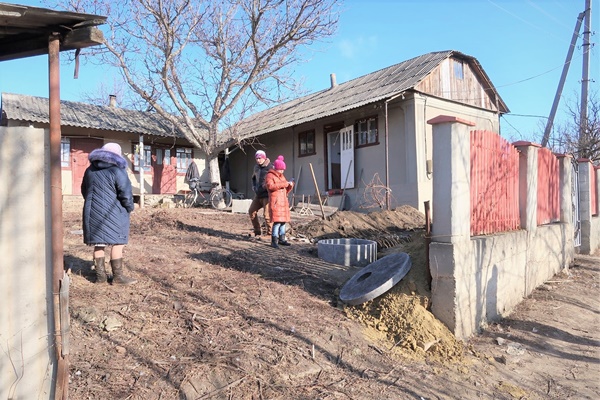 Vladimir Nadkrenicinii, Präsident von Pro Umanitas und seine zwei Mitarbeiter vor Ort haben sich um die mittel- und obdachlose Familie gekümmert. Ein renovationsbedürftiges Haus wurde gekauft, und mit Hilfe der Dorfbewohner taten sie alles, um der Familie zu helfen.