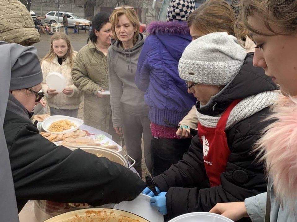 Caritas-Spes Ukraine engagiert sich seit Beginn des Krieges im Donbass-Gebiet für Geflüchtete und alle Menschen, die auf Hilfe angewiesen sind. Sie versorgt die Not leidenden Menschen mit Lebensmitteln, Medikamenten, Hygieneartikel und Kleidung. Zudem verfügen sie über Feldküchen mit Küchen- und Esszelten, stellen Notunterkünfte zur Verfügung und bietet psychologische Hilfe an.