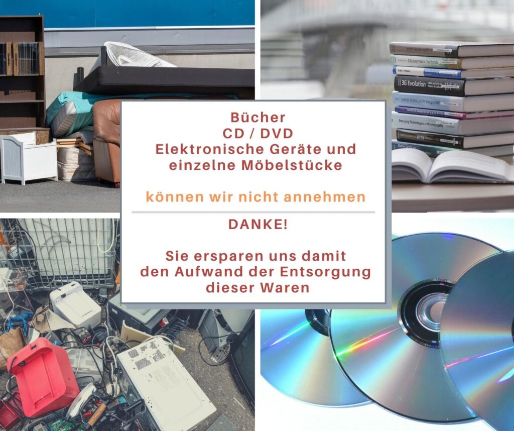 Aus diesem Grund ist es wichtig, dass wir Sachspenden erhalten, die sauber, gut erhalten und brauchbar sind. Es erleichtert unsere Arbeit sehr, wenn die Waren sauber sowie unbeschädigt in zugebundenen Säcken oder Kartons abgegeben werden.